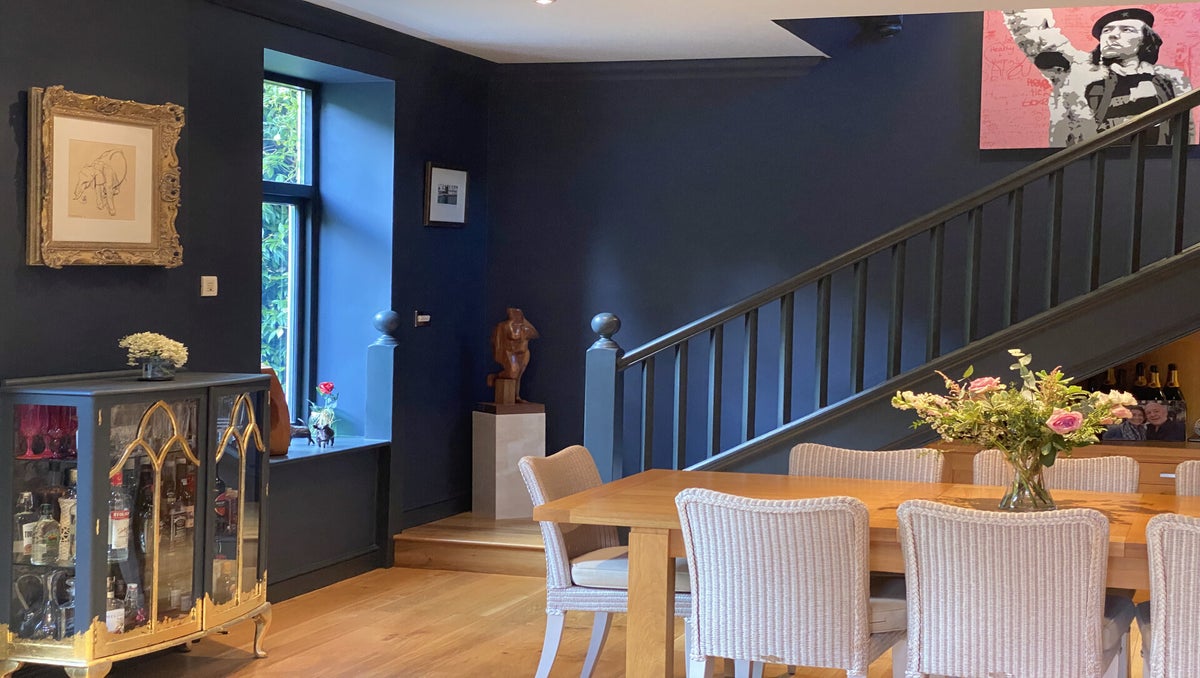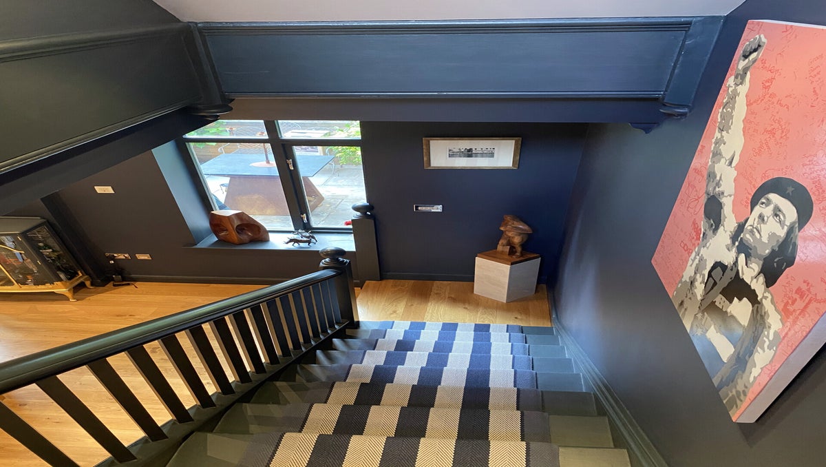 The rest of the property received a makeover using colours with depth to dramatic effect, which allowed the clients existing pieces to sing. A bespoke stair runner continues the drama sweeping you upwards to the master suite.
