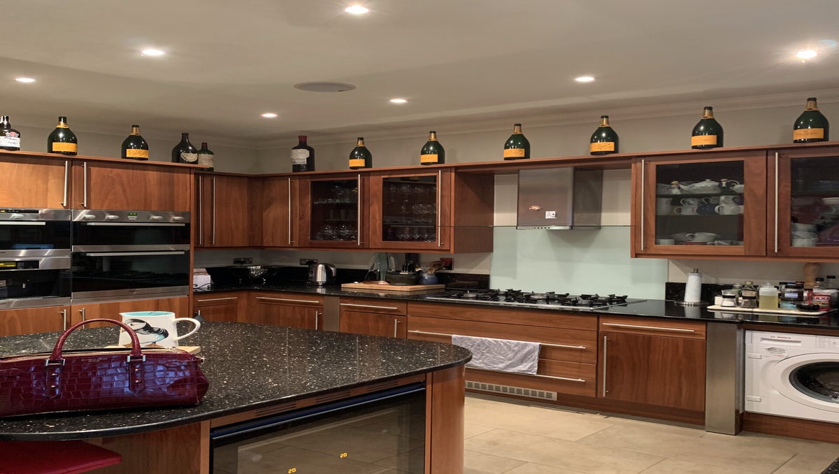 A complete transformation of the existing kitchen, utility, and WC into a truly stunning space. The initially brief was to create a light, bright kitchen, but with only two small windows for natural light, I decided to give the clients something completely unexpected. By creating a vaulted gold leaf ceiling, I used hidden uplighting to bounce a beautiful glow back into the space.